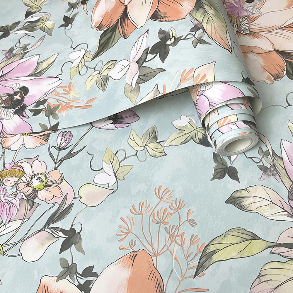 Bring whimsical charm to your child',s room with Holden Decor Floral Fairies Wallpaper. This enchanting, painterly design features delicate fairies hidden amongst blossoming petals, creating a sophisticated yet playful atmosphere perfect for nurseries and children',s bedrooms. Made from high-quality, FSC-certified material, this smooth, spongeable wallpaper has a matte finish for easy cleaning. Paste-the-paper application simplifies installation. Each roll measures 10.05m long and 53cm wide, with an offset design repeat of 53cm/26.5cm. The teal colourway adds a touch of magic.