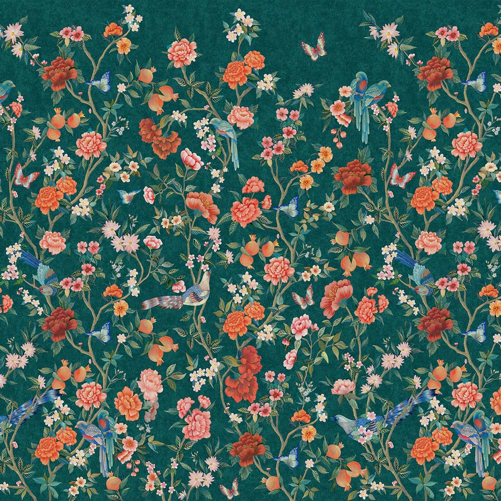 Step into a world of timeless elegance with the Holden Imperial Gardens Teal Wallpaper. This exquisite mural transports you to the heart of Beijing’s Forbidden City, featuring trailing peonies that symbolise wealth and prosperity, interwoven with whimsical birds and butterflies. Each element is beautifully hand-painted and meticulously detailed, elevating your interiors with a design that tells a story of ancient beauty and enduring nature.
