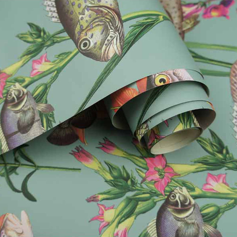 Add a touch of aquatic elegance to your home with the Lagoon wallpaper. Its rich teal background is beautifully adorned with fish and delicate florals in a vibrant array of colours. This high-quality, matt-printed wallpaper is effortlessly stylish and complements any interior design. Paste-the-paper application makes installation easy. The design features a straight match with a 53cm repeat. Each roll is 10.05m long and 53cm wide.