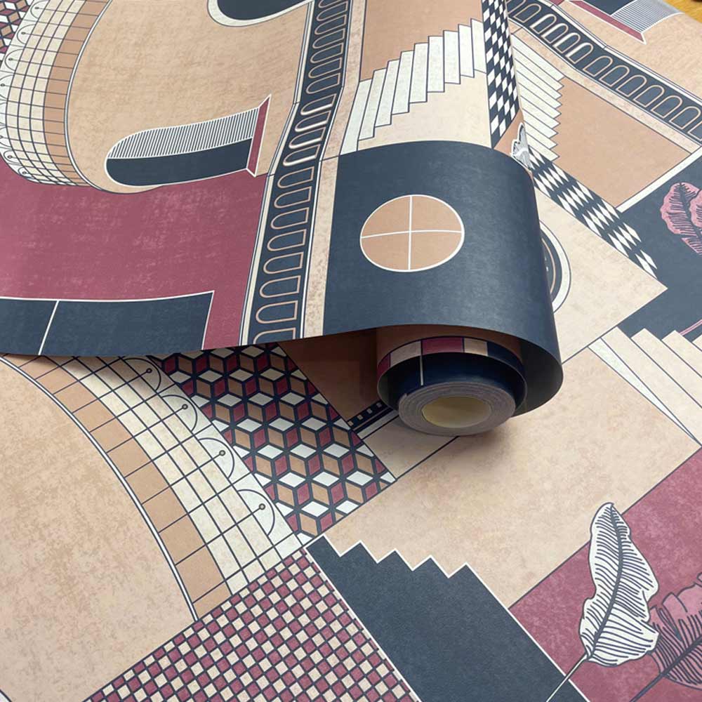 Holden Medina Red and Navy Wallpaper will instantly update your living space. The Mediterranean-inspired design showcases intricate geometric details, painterly elements, chequeered patterns, leaves, arches, and windows in rich red and navy tones. Perfect for modern or vintage interiors, this wallpaper offers a stylish and affordable way to transform a room. It has an offset match, with a 64/32cm design repeat, 10.05m roll length, and 53cm width.