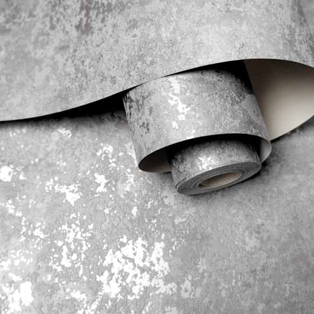 Obsidian wallpaper: a concrete-style design with high-shine metallic flecks on a textured industrial background. This sophisticated wallcovering complements many interior styles, adding elegance and visual depth with its raised texture. Ideal for a feature wall or an entire room, it boasts a straight match design with a 53cm repeat for easy application. Each 10.05m long roll is 53cm wide and comes in a striking grey/silver. Paste the paper for application.