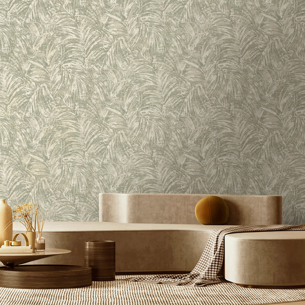 Transform your space with the exquisite Holden Pindo Palm Bead Sage Wallpaper. This stunning design features a digitally printed all-over leaf pattern, enhanced by luxurious glass beads and shimmering accents that break up the leaf shapes. Inspired by the swaying of feather palm leaves in the Sahara's recurring dust storms, it brings a touch of elegance and natural beauty to any room.