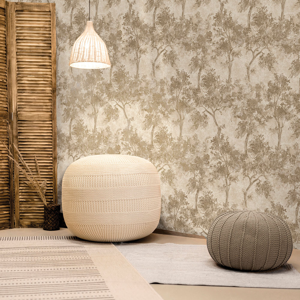 Elevate your space with the luxurious Holden Tipu Bead Taupe Wallpaper. Inspired by the beautifully shaped trees that thrive in the desert's arid climate, this digitally printed design features soft metallic tones and delicate glass bead embellishments. These beads artfully represent the hazy patterns created by the scorching heat, bringing a touch of elegance and the mystique of desert landscapes into your home.