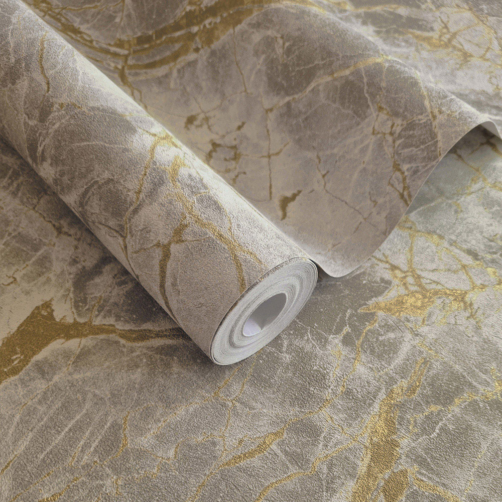 Make a statement with this Portoro Marble Grey Gold wallpaper. Inspired by the luxurious veining of Portoro marble, its metallic highlights create a truly striking design. Printed on an FSC-certified substrate, this wallpaper boasts a rich, organic beauty. Perfect for adding a touch of sophisticated elegance to any room. Each roll measures 10.05m in length and 53cm in width. Offset design match. Paste the wall application.