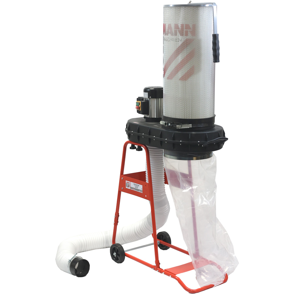 Take on tough workshop cleanups with the Holzmann ABS850 mobile dust extractor. Perfect for smaller workshops, this robust machine tackles large volumes of wood chip waste and fine dust with ease. Its powerful 750W motor and 850 m³/h airflow ensure efficient extraction, while the cloth filter bag keeps dust particles contained, creating a cleaner working environment. The 40-liter waste collection bag minimises interruptions, and the included 2m flexible intake hose provides convenient reach. This compact machine makes light work of even the toughest wood dust, leaving your workshop spotless.