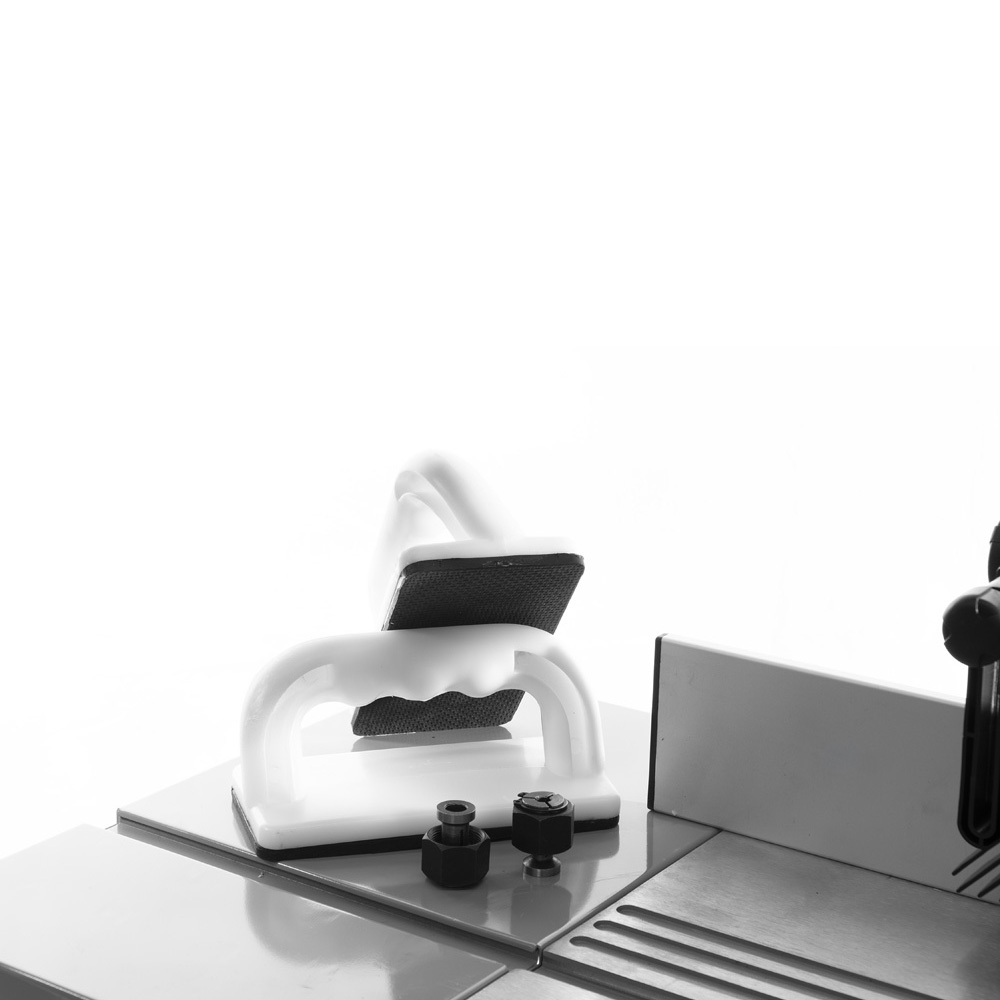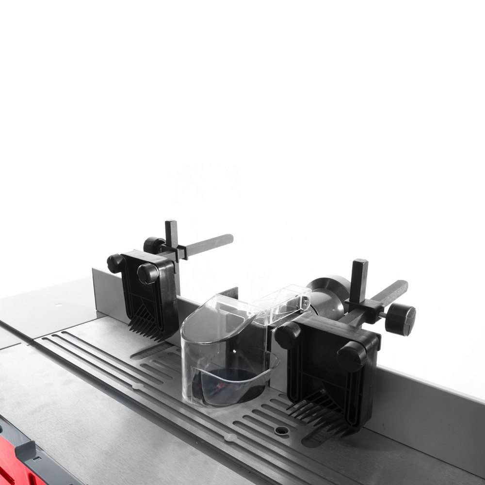Unleash your woodworking potential with the Holzmann TFM610V benchtop router table. Perfect for DIY enthusiasts and hobbyists with limited space, this compact powerhouse boasts a robust 1500W motor for smooth, powerful operation. Its die-cast alloy table ensures stability, while adjustable aluminium guide fences provide precision. Achieve the perfect cut every time with the 0-40mm cutter height adjustment and 6-step electronic speed control (11500-24000 min). Extend your capabilities with included left and right side extension tables, ideal for longer woodworking projects. A sliding mitre guide simplifies end-grain moulding, and the included 6, 8, and 12mm collets, plus 1/4" and 1/2" collets, offer versatility for various applications. This free-standing router table is built for the home woodworker who demands both power and precision.