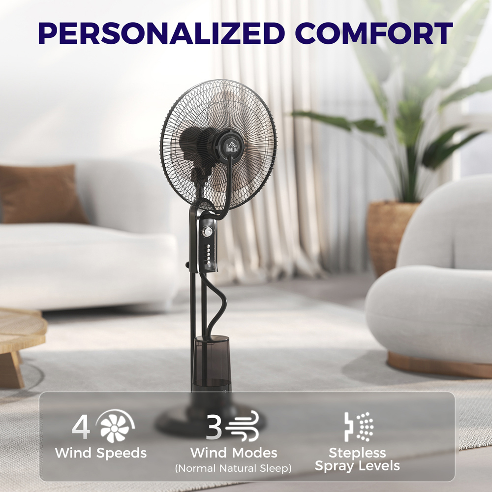 HOMCOM 47 inch Black Oscillating Spray Misting Pedestal Fan