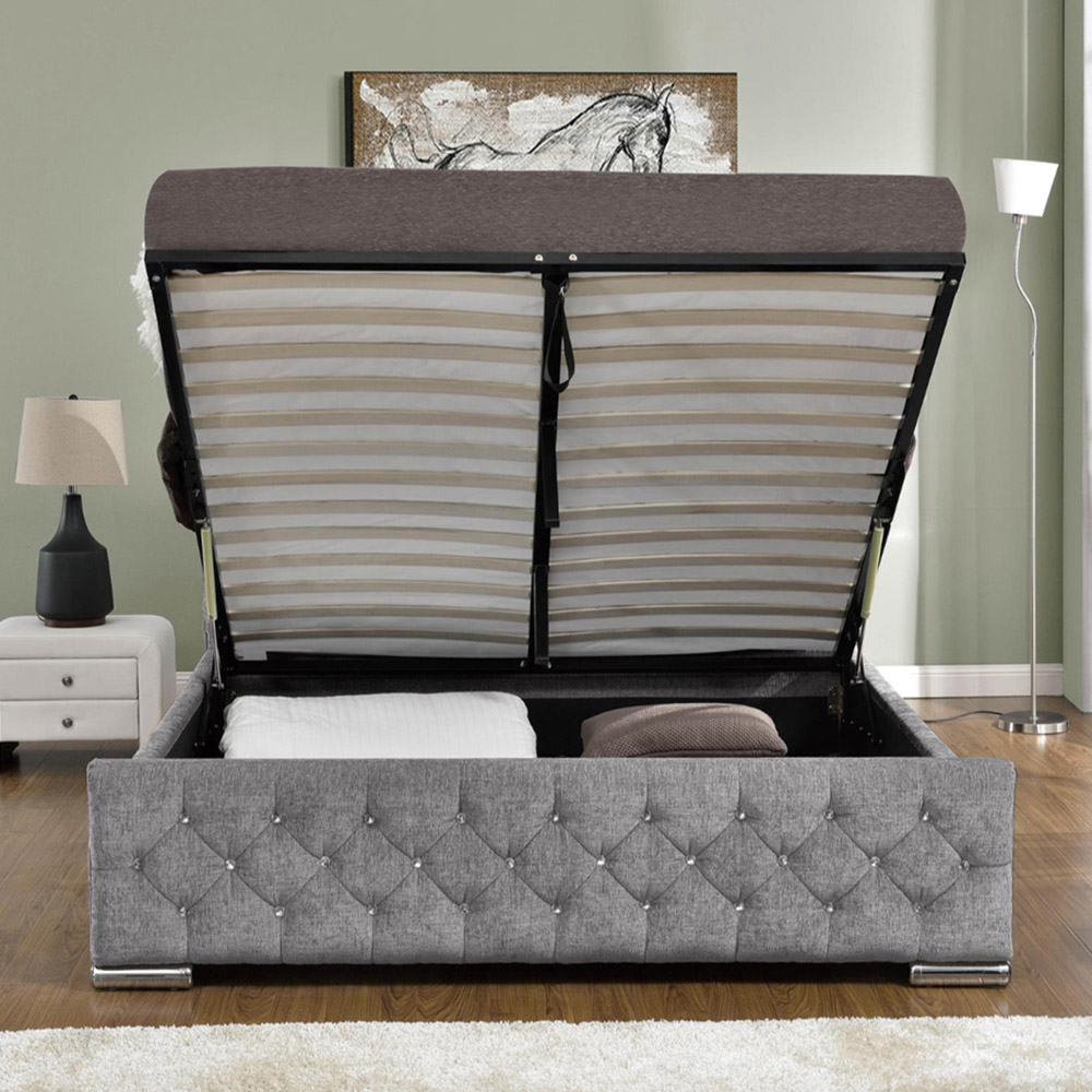 Home Detail Arya Super King Silver Chenille Ottoman Bed