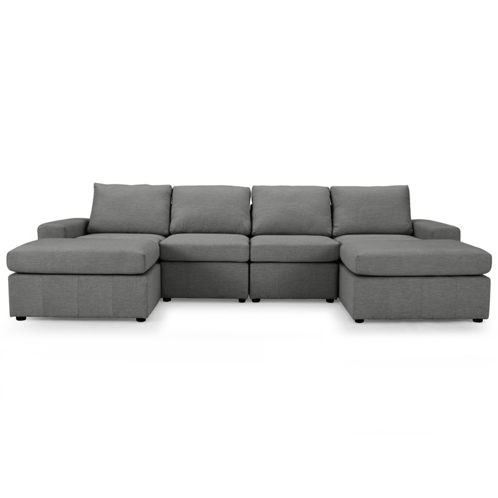Introduce an air of sophistication to your living room with the Home Detail Celestia four-seater dark grey fabric corner sofa. Meticulously handcrafted to exacting standards, this U-shaped sofa is draped in a gorgeous dark grey fabric, promising enduring quality and timeless appeal. Designed to comfortably accommodate up to four individuals, it also features complementary footstools and chaise cushions for added relaxation. Effortlessly enhance the ambience of your living space with this stylish centrepiece. To maintain its pristine appearance, vacuum the sofa weekly in the direction of the pile using a low setting and upholstery attachment. A soft hand brush can also be used to fluff the fabric and preserve its colour. Please ensure that this large sofa will fit through all access points, with a minimum door width of 80cm.