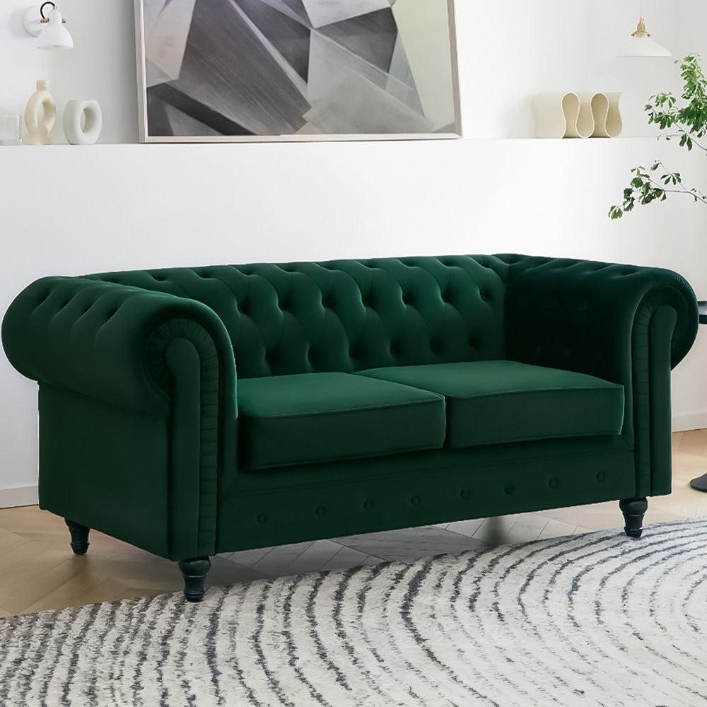 Home Detail Chesterfield 2 Seater Pleat Green Velvet Sofa