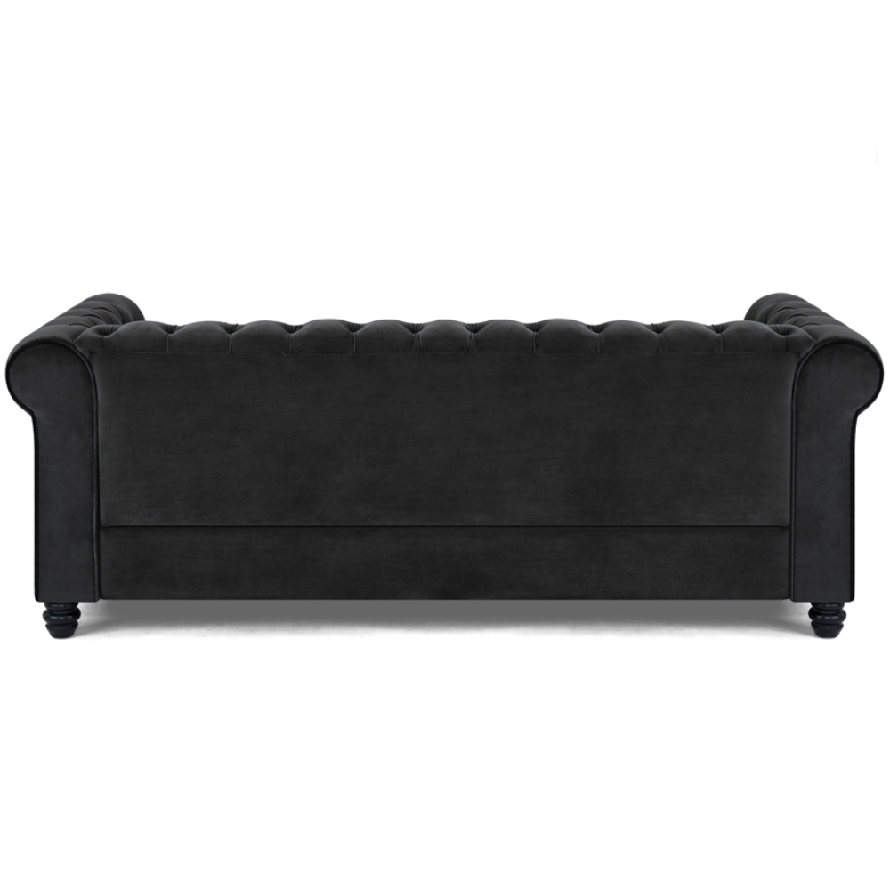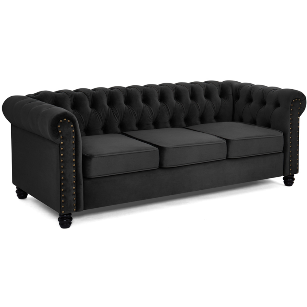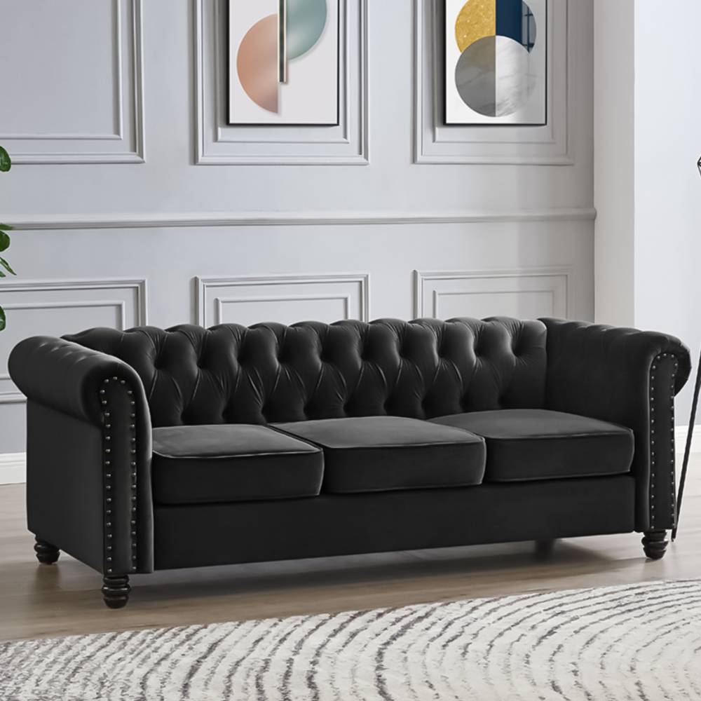 Home Detail Chesterfield 3 Seater Studded Black Velvet Sofa
