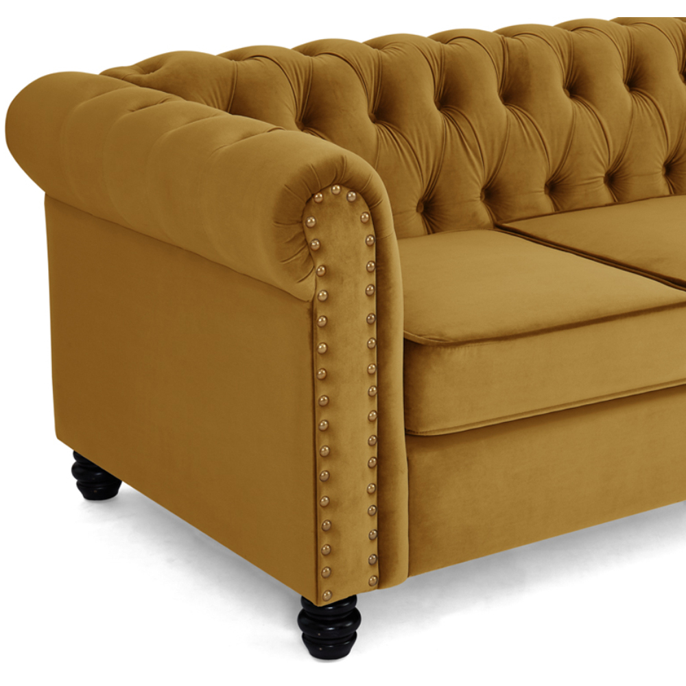 Home Detail Chesterfield 3 Seater Studded Gold Velvet Sofa