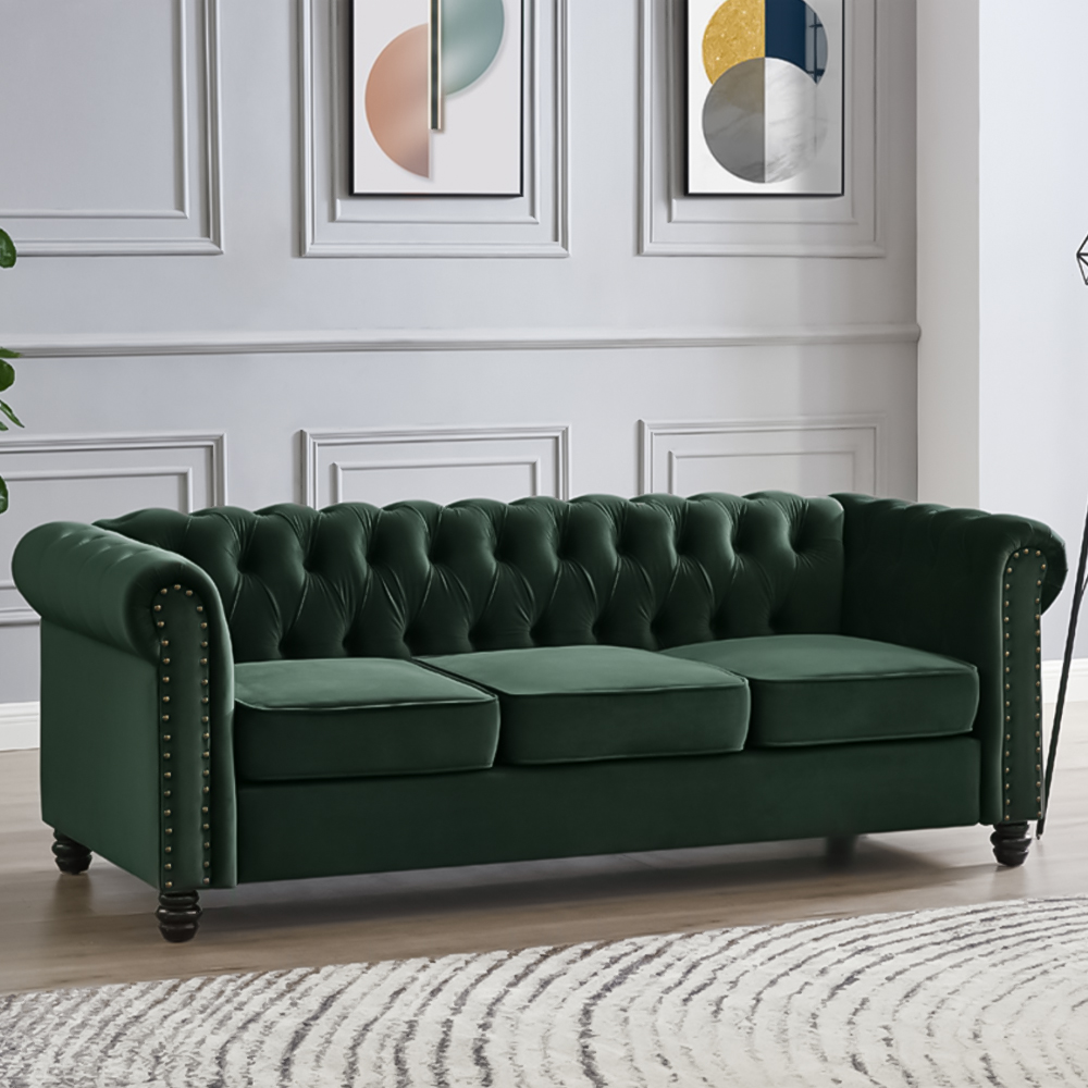 Home Detail Chesterfield 3 Seater Studded Green Velvet Sofa