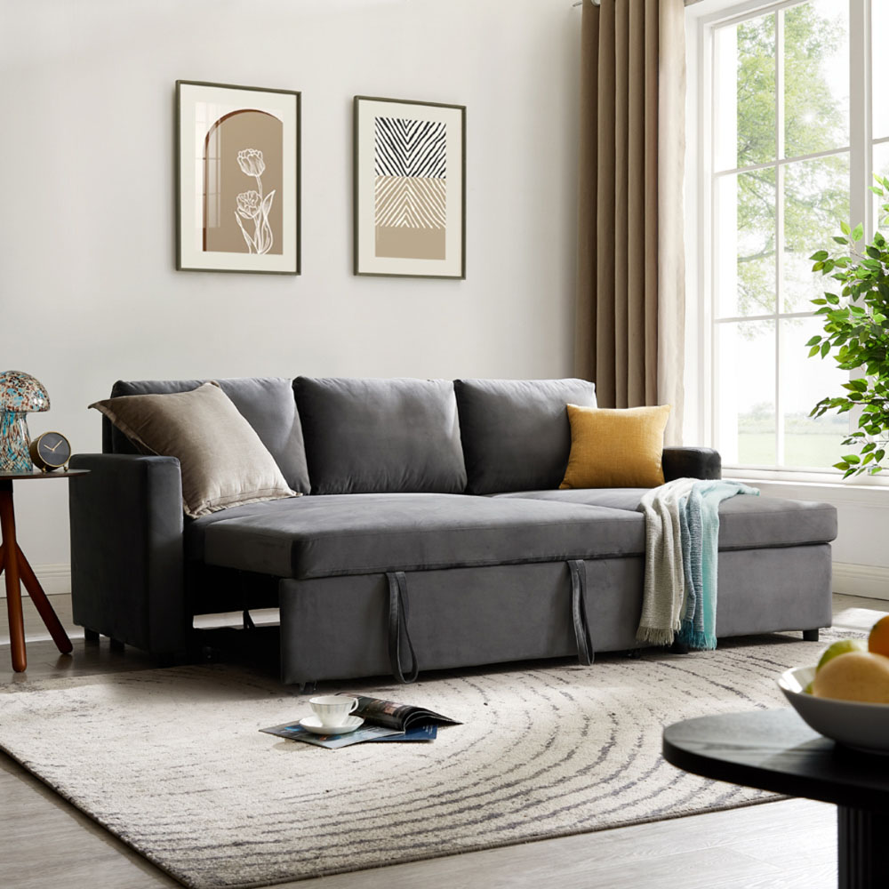 Home Detail Dorset Small Double Sleeper Grey Velvet Pull Out Sofa Bed with Storage