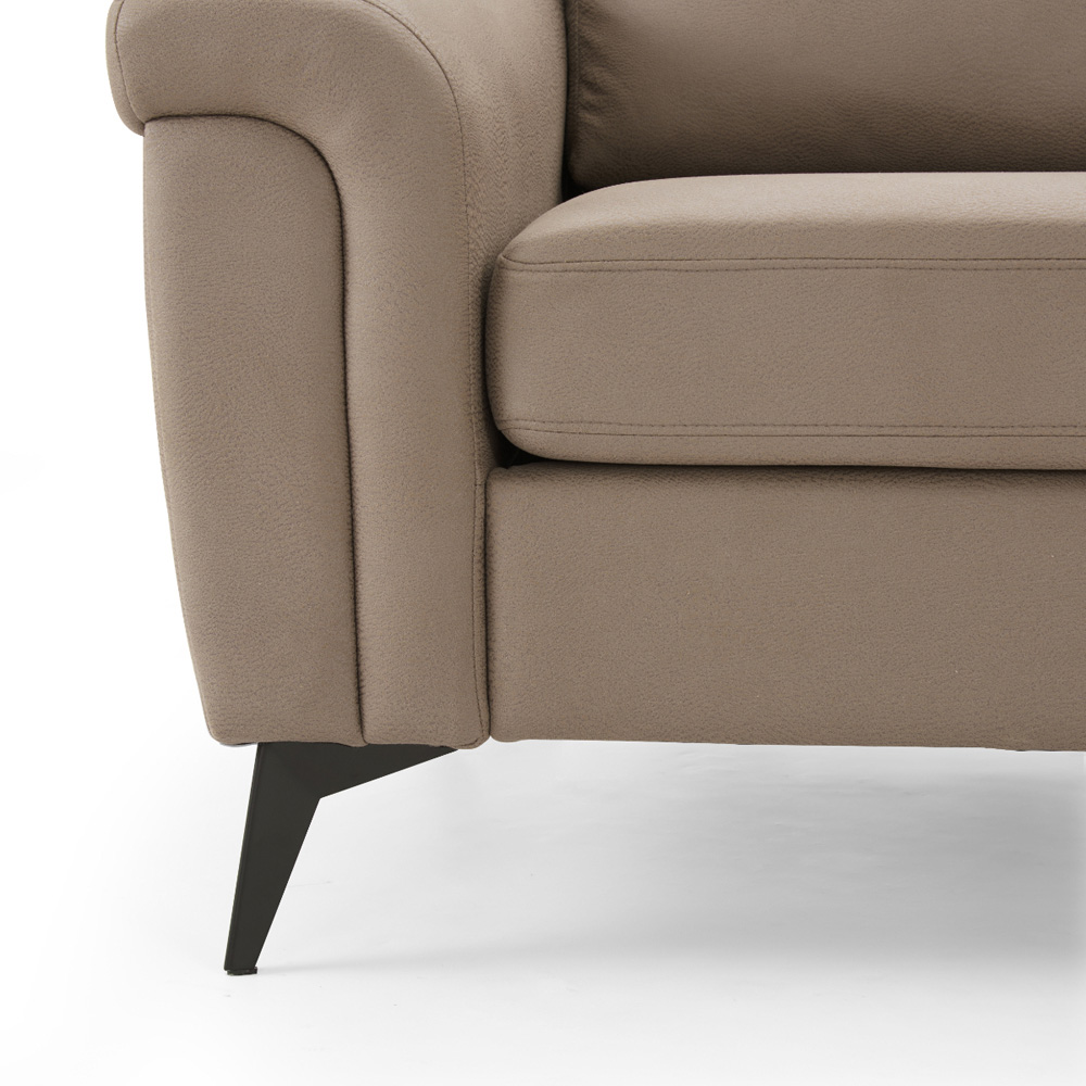 Simple and elegant, the Emma three-seater sofa exudes understated charm. Its L-shape and brown air leather fabric makes it a truly stylish addition to your living room. Handcrafted to the highest construction standards, this sofa is built to last and can easily seat up to three people. Complete with a reversible chaise for added convenience, the chaise can be arranged on the left or right to complement your home's style. Elevate your living space ambience effortlessly with this stunning sofa. Care and Use: Wipe the leather clean with a damp cloth to remove stains. Minimum door width: 80cm. Ensure this sofa can fit through any access doors and walkways up to and within your property.