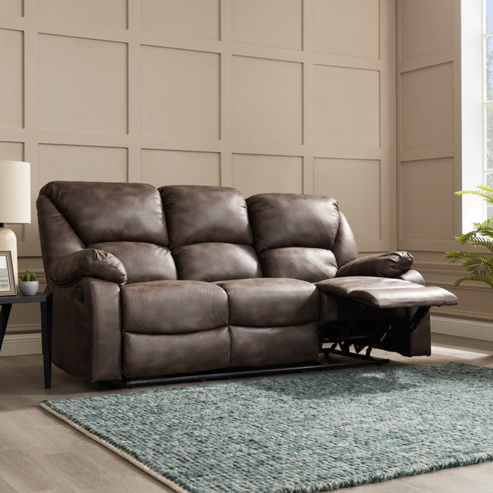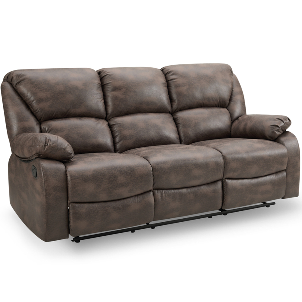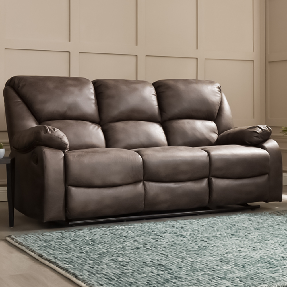 Home Detail Enoch 3 Seater Brown Faux Leather Manual Recliner Sofa