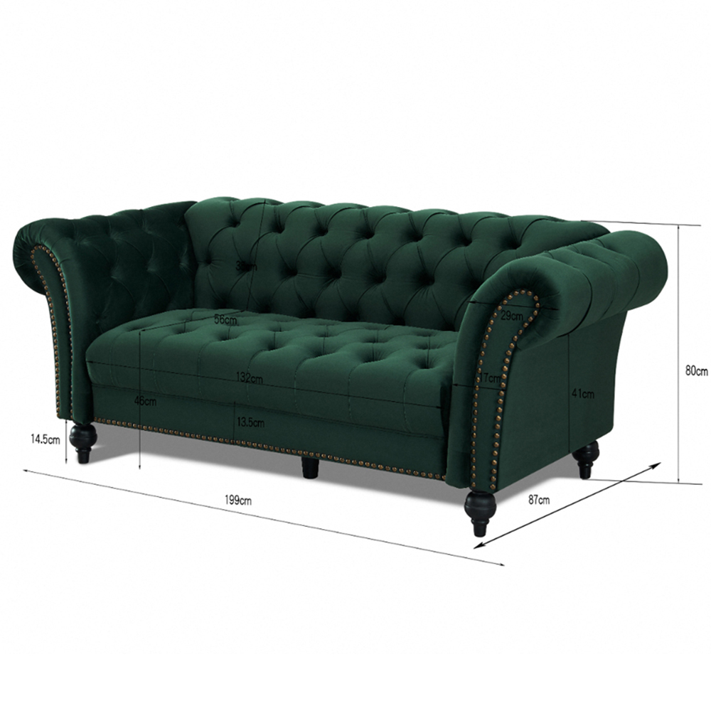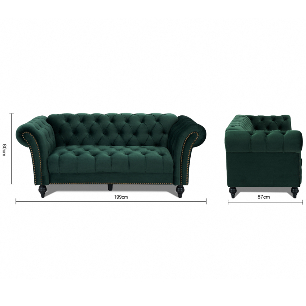 Elevate your living space with the Mayfair 3-seater sofa, a statement piece crafted from sumptuously soft green velvet. Sink into its inviting comfort, supported by a firm backrest designed for lasting relaxation. Meticulously handcrafted, this sofa boasts robust construction and sturdy feet ensuring stability and enduring quality. Maintain its luxurious appearance with weekly vacuuming using the upholstery attachment on a low setting, always following the direction of the pile. A gentle hand brush can also revive the velvet',s plush texture and vibrant colour. Please note that variations in fabric appearance may occur due to differences in lighting and screen display. For any faux leather sections, simply wipe clean with a damp cloth. Before ordering, please ensure access to your property allows for easy passage of this generously sized sofa, requiring a minimum door width of 80cm.