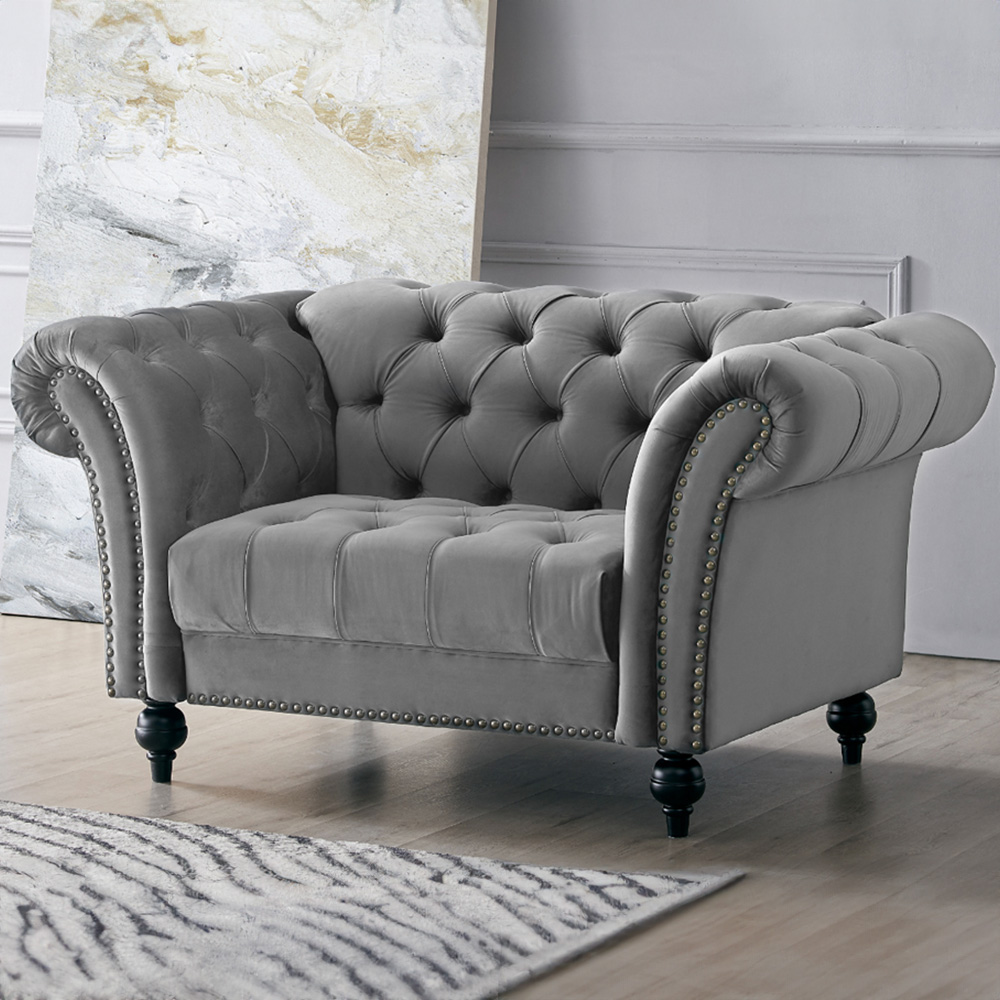 Home Detail Mayfair Grey Velvet Curved Sofa Chair
