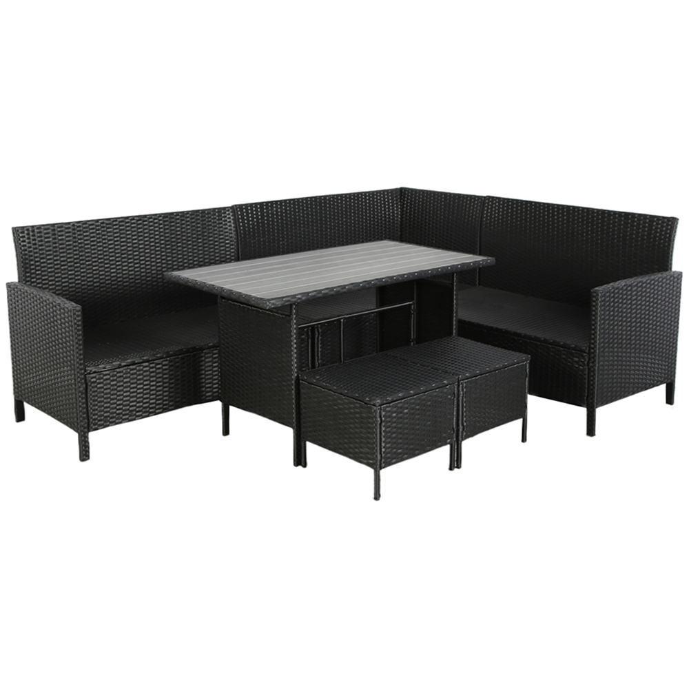 Create the ultimate outdoor haven for up to eight people with the Home Garden Direct Thalia Black Rattan Corner Sofa Set. This set blends contemporary design with long-lasting materials. Sink into the plush cushions and enjoy the refined PE rattan weave – a modern twist on a timeless classic. The dining table is available with either a sleek 5mm black tempered glass top for a polished finish or a grey plywood top for a more rustic, natural vibe. Crafted with a robust steel frame and weather-resistant polyester cushions, this set is built to withstand the elements and provide years of support with minimal upkeep. Making it a stylish and functional centrepiece, perfect for dining and relaxation in any garden or patio.