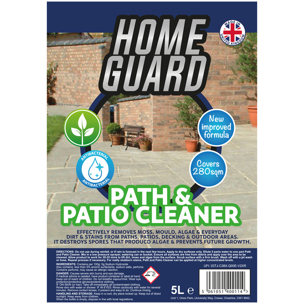 Keep your patios, paths, decking, and other outdoor areas looking their best with the Home Guard Path and Patio Cleaner. This powerful cleaner tackles algae, moss, and dirt with ease. Its professional-strength formula not only removes stubborn grime but also eliminates algae spores, preventing future growth and saving you time and effort. This twin 5L pack provides extensive coverage of up to 280 square metres per container, making it a cost-effective choice for large areas. Achieve professional-grade results effortlessly, ensuring your outdoor spaces stay spotless and welcoming.