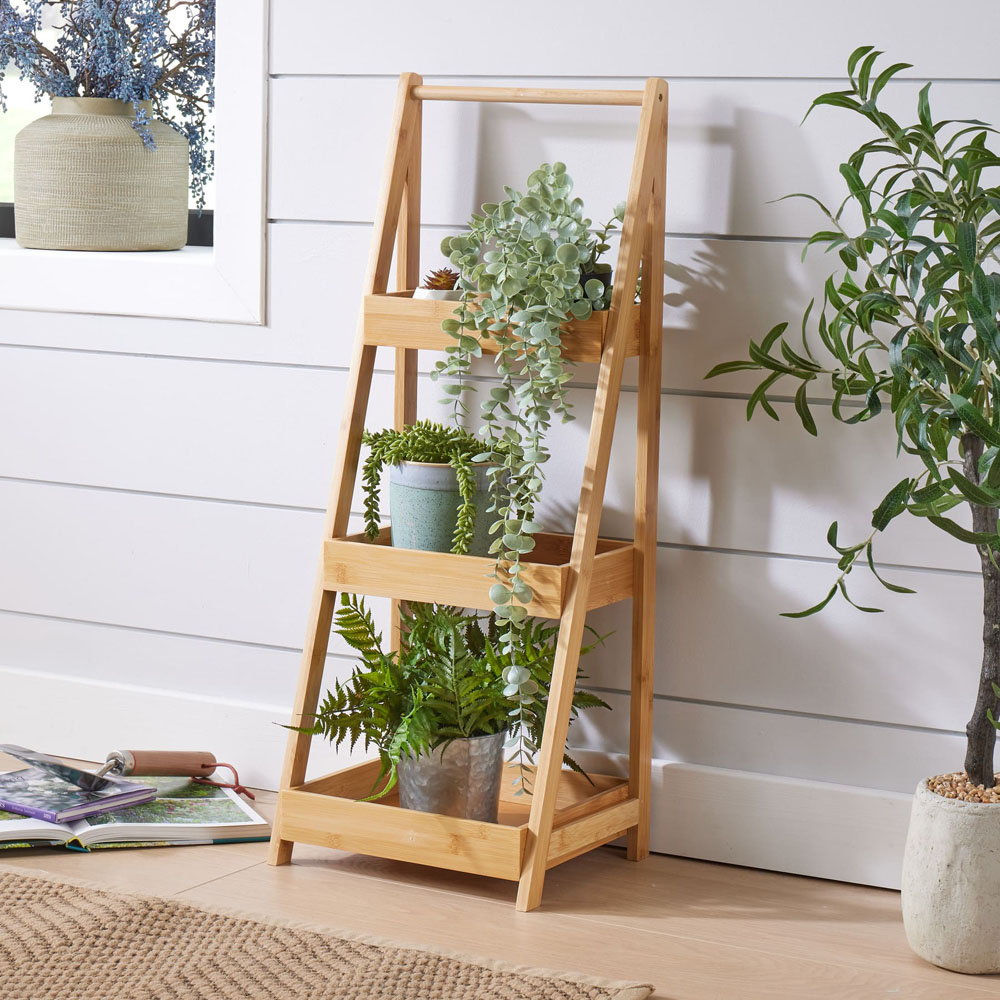 Home Source 3 Tier Bamboo Ladder Style Plant Stand