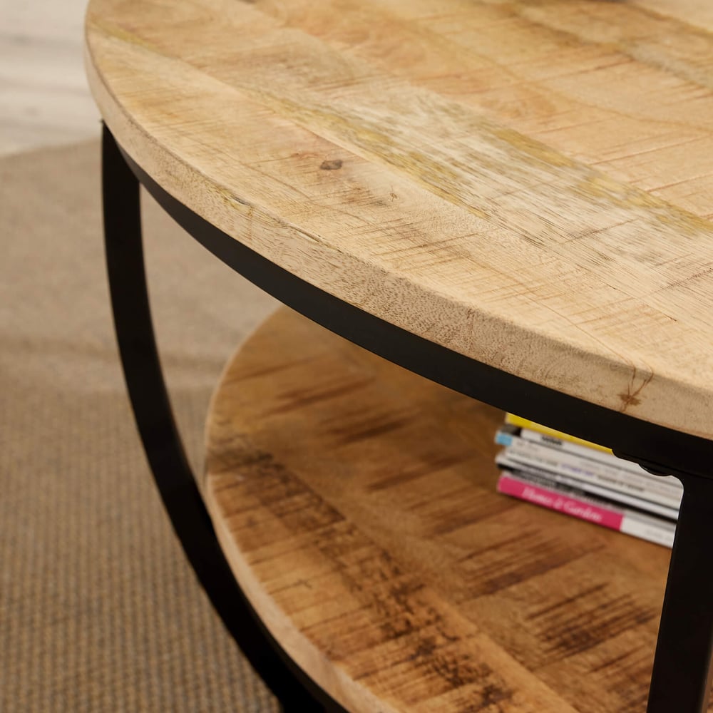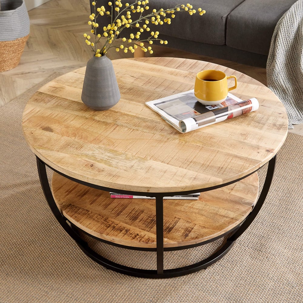 Home Source Albany 2 Shelf Mango Wood Round Coffee Table