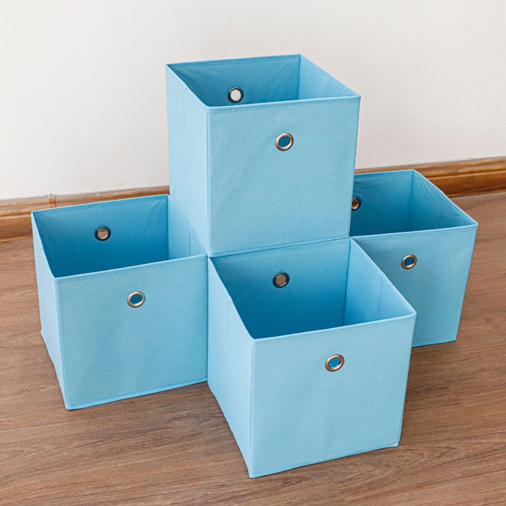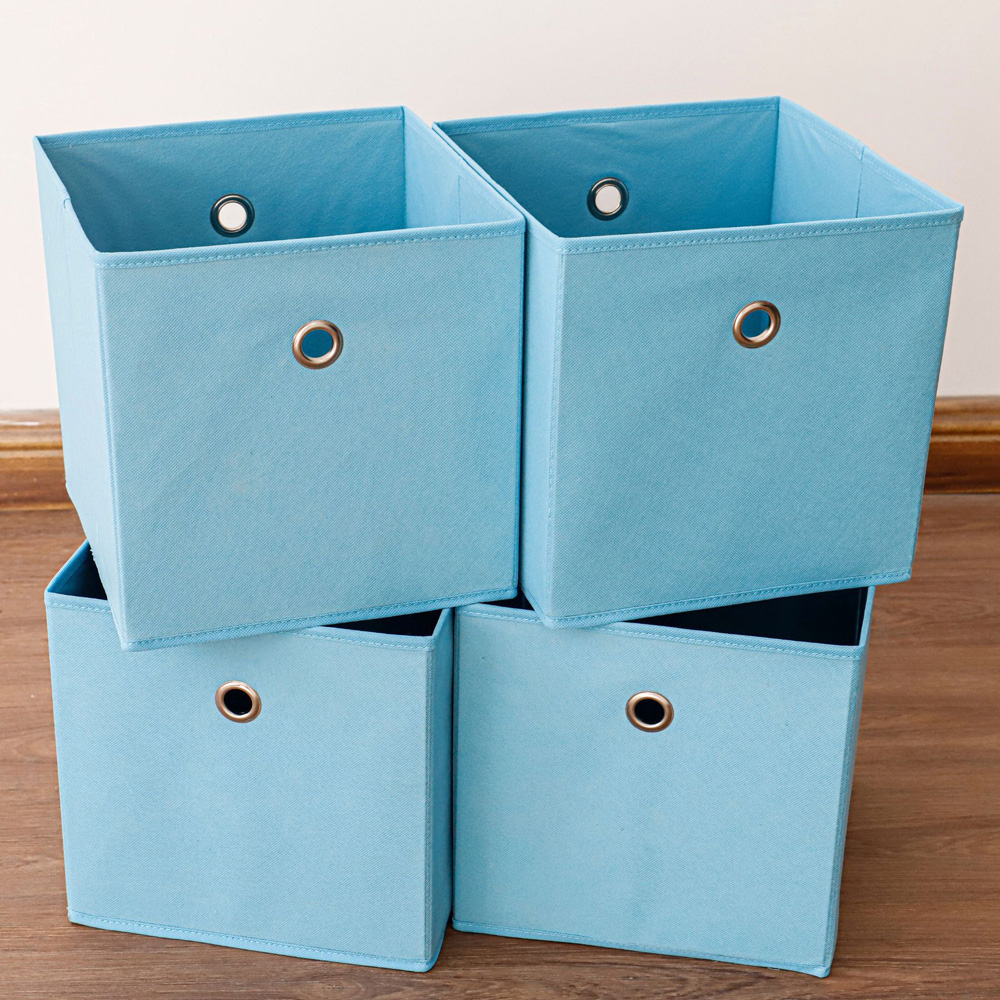 Home Source Aqua Blue Fabric Cube Storage Box 4 Pack