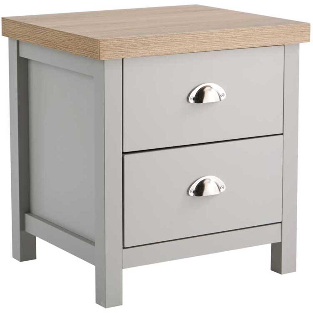 Home Source Avon Grey 2 Drawer Bedside Cabinet