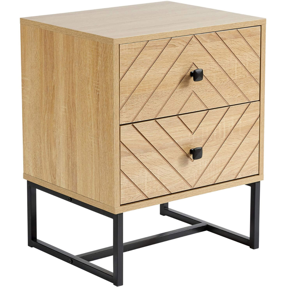 Give your room a fresh, modern update with the Home Source Aztec Bedside Table. This funky cabinet, featuring a stylish Aztec-inspired design, is ideal for your bedroom, living room, or even the office. Constructed from hard-wearing melamine and MDF, it provides a durable and attractive storage solution. The two drawers offer ample space to keep your essentials tidy and organised. Delivered flat-packed for straightforward self-assembly, ensuring a fun and satisfying home assembly experience.