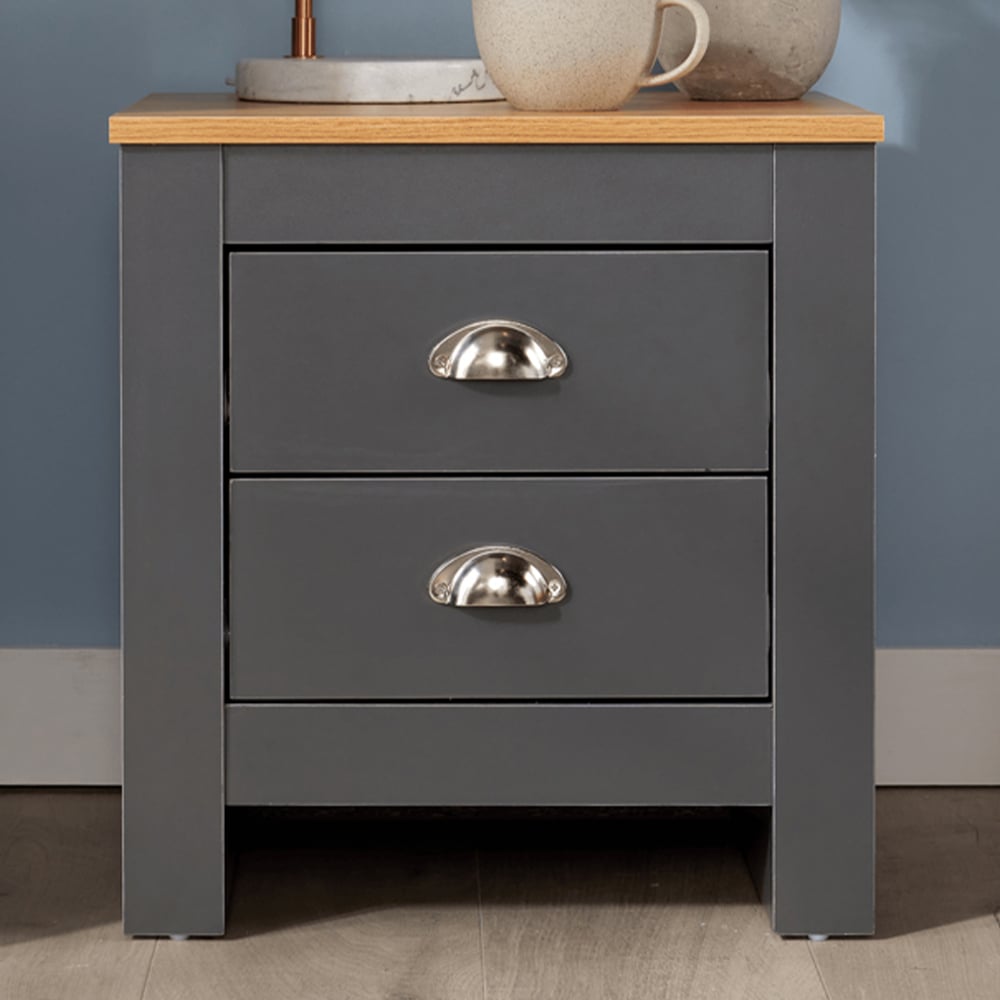 • 2 drawers with metal cup handles