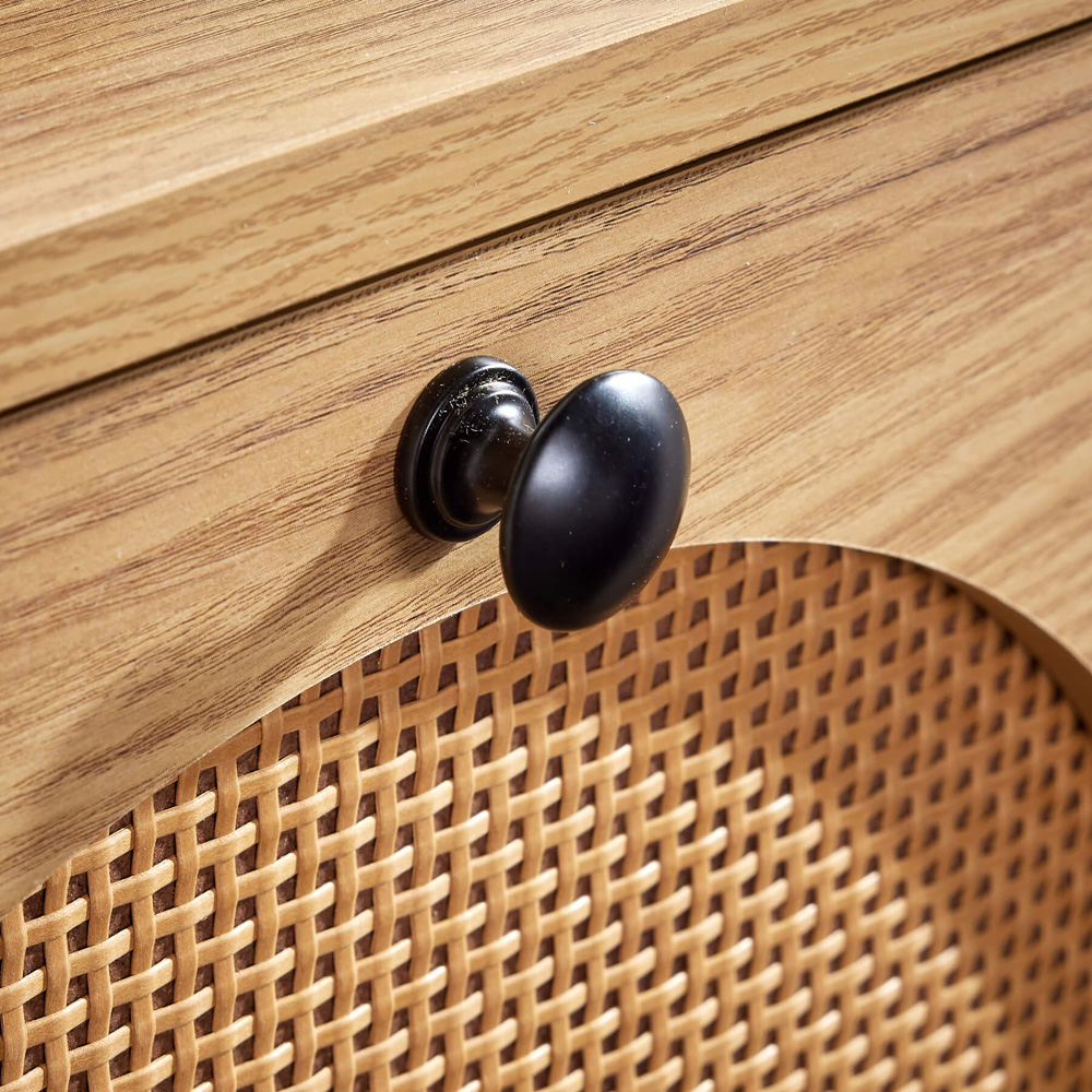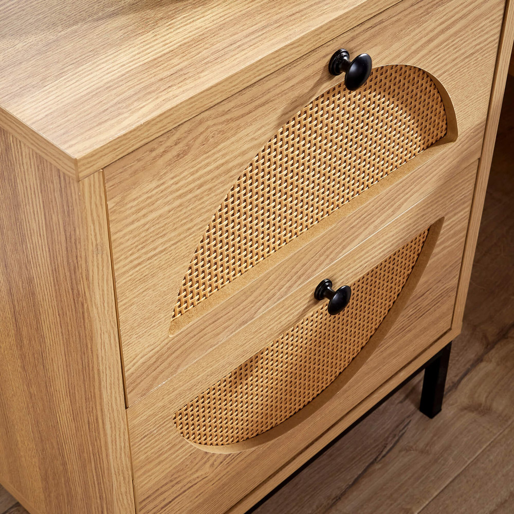 Add a touch of elegance to your sleeping space with the Home Source Chatteris 2 Drawer Bedside Table, where style meets practicality. This wooden nightstand features a distinctive paper finish, beautifully enhanced by PVC rattan detailing, offering a modern rustic aesthetic. Complete with two generously sized drawers, it provides plenty of room for your bedtime necessities. Supported by sleek black steel legs, finished with a powder coating, ensuring a stable and long-lasting design. Designed for straightforward home assembly, this bedside table combines both style and convenience, blending effortlessly with any bedroom setting.