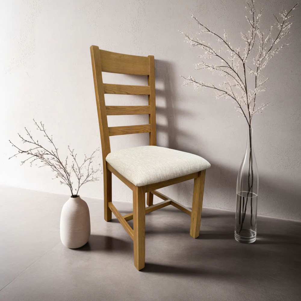 Elevate your dining experience with the Copenhagen Smoked Oak Dining Chairs, where contemporary design meets the inviting warmth of smoked oak. These meticulously crafted chairs feature a choice of slatted or cross-back designs, each offering exceptional support and style. Upholstered in beige wool with foam-filled seats and backrests, they promise maximum comfort during every meal. Arriving fully assembled, these dining chairs are a seamless blend of sophistication and practicality, ready to enhance your dining space. The pack includes two chairs. Seat to Floor Height: 49cm.