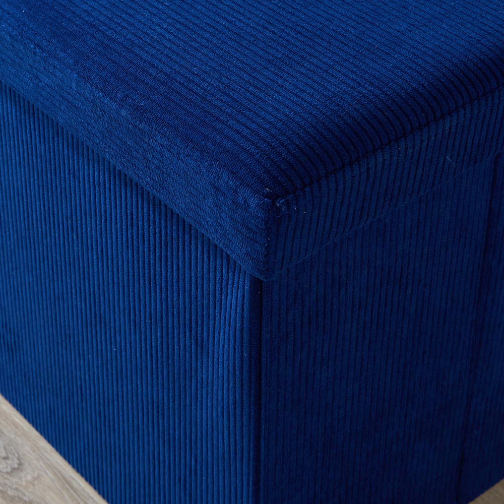 Maximise your storage with this rectangular ottoman, draped in sumptuous corduroy that plays with light and shadow. Offering double the capacity of our square ottoman, it's perfect for stowing everything from clothes and shoes to newspapers, bedding, towels, toiletries, paperwork and files. Reclaim your floor space effortlessly – when not in use, simply fold it flat for compact storage. Supplied flat-packed to save space in storage and transit. Dimensions: (W) 76cm x (D) 38cm x (H) 38cm.