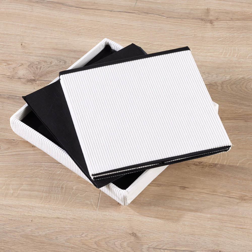 Declutter your home with this chic, square ottoman, featuring a beautiful corduroy finish that plays with light and shadow. Perfect for stowing away clothes, shoes, newspapers, magazines, paperwork, bedding, blankets, towels and toiletries, this storage box offers ample space while reclaiming your floor. When not in use, it conveniently folds flat for easy storage. Supplied flat-packed, this ottoman is designed for space-saving efficiency from warehouse to home. Dimensions: (W) 38cm x (D) 38cm x (H) 38cm.