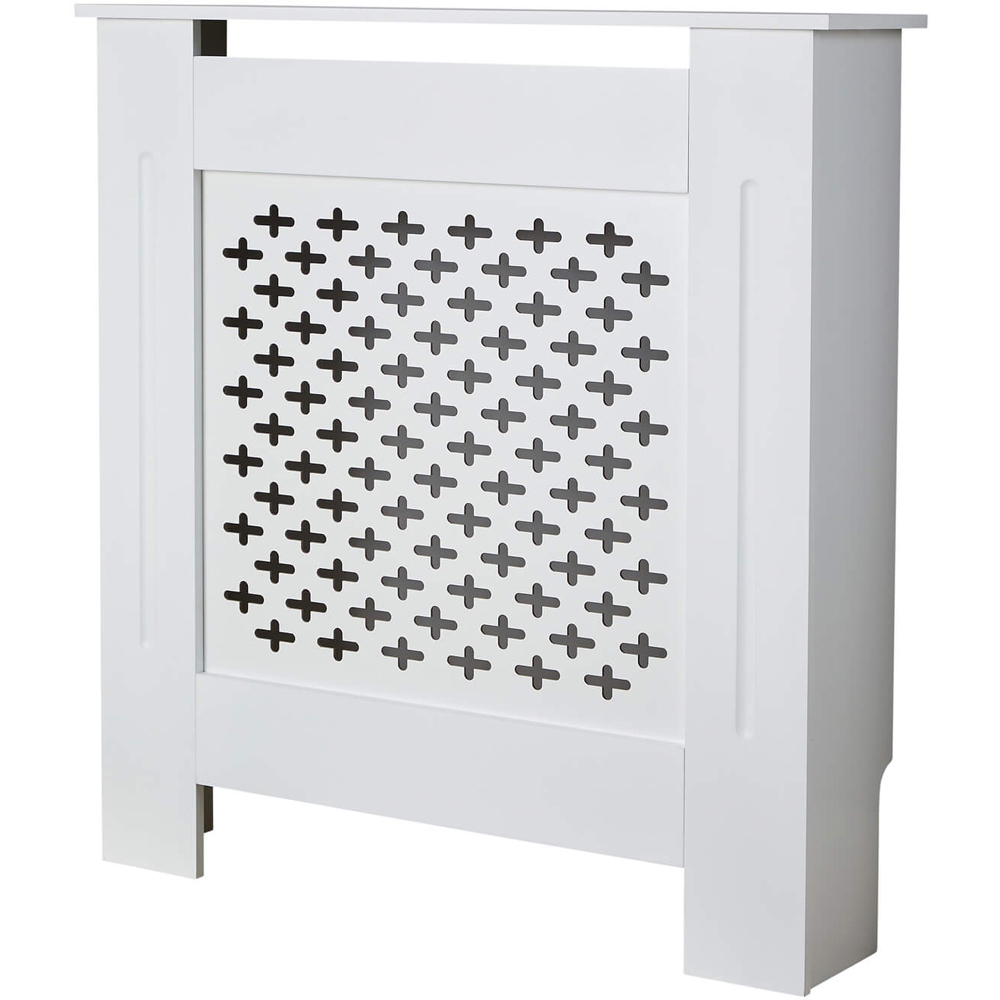 Conceal your radiator in style with the Crofton Radiator Cover, a sleek and practical addition to any room. Crafted from MDF, this cover features a decorative grille, adding a touch of elegance while discreetly hiding your radiator. Perfectly sized for smaller spaces, it measures W78cm x D19cm x H82cm.