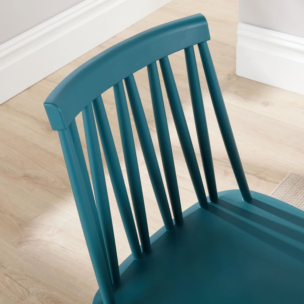 Want to refresh your dining space with a touch of contemporary flair? This Fleur Dining Table and four Teal Lucy Chairs offer the perfect blend of style and practicality. The crisp white table, crafted from quality MDF, features a clean, modern design that effortlessly complements any kitchen or dining area. Elegant, angular, tapered wooden legs add a sophisticated touch. Complementing the table, the teal Lucy chairs showcase a Scandi-inspired design, complete with stylish tapered legs and a durable, powder-coated metal base. Combining comfort and longevity, this dining set is ideal for family meals and entertaining, enhancing the look of your home whilst providing a welcoming space for all.