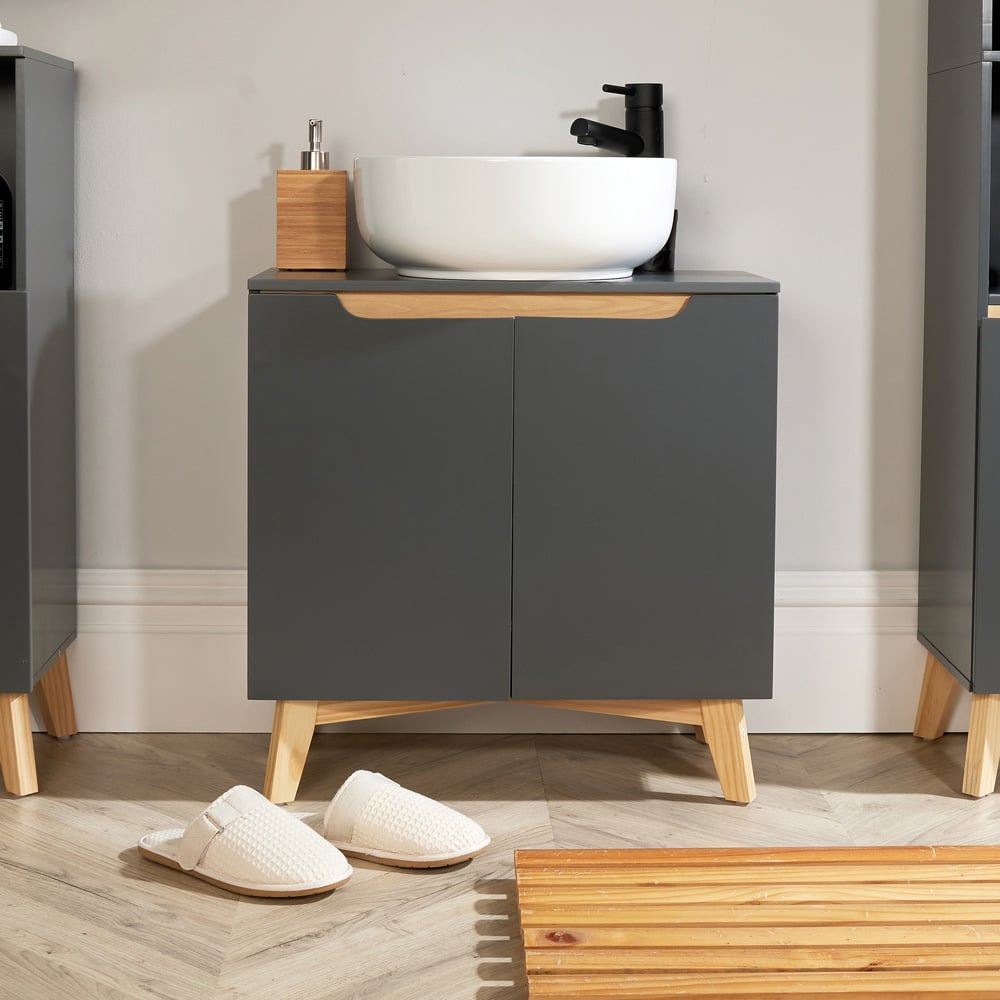 Home Source Florence 2 Door Grey Under Sink Cabinet