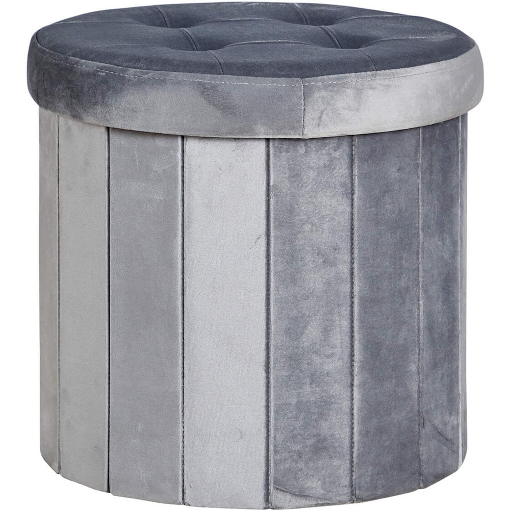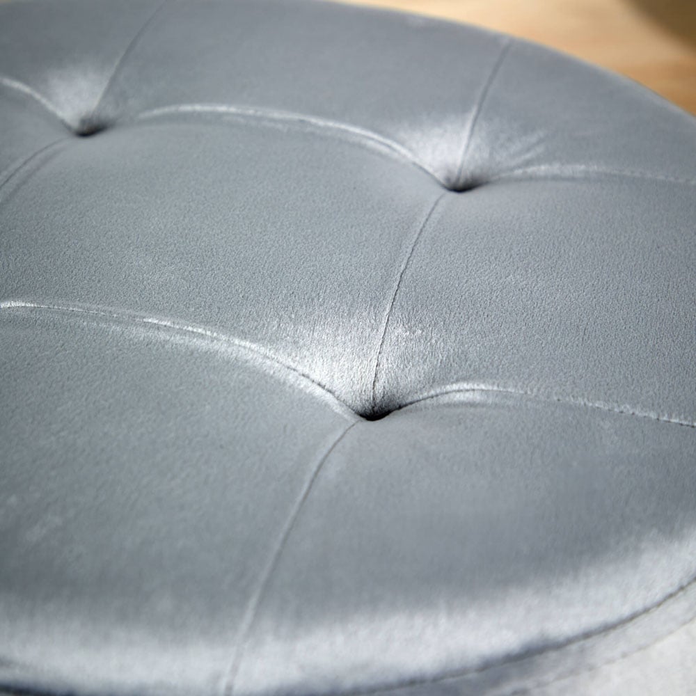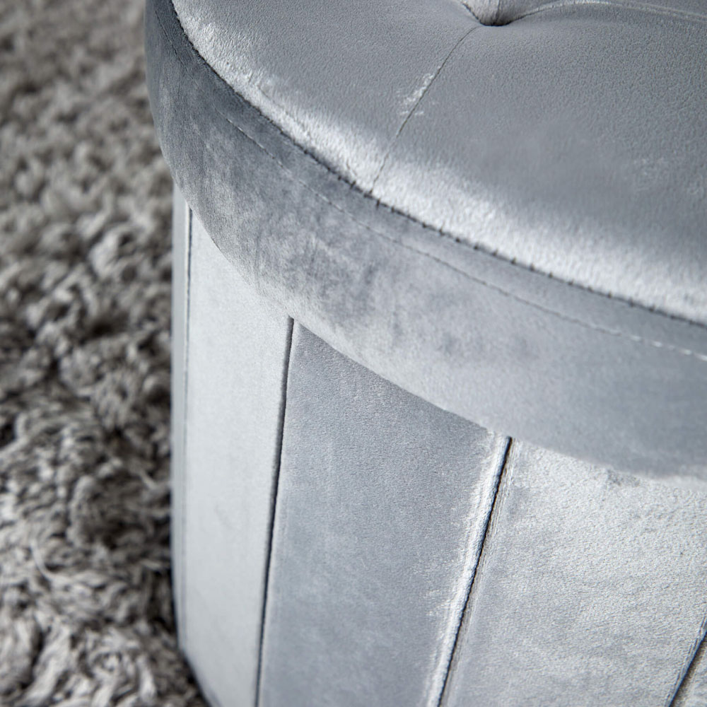 Home Source Grantham Grey Velvet Round Ottoman Storage Unit