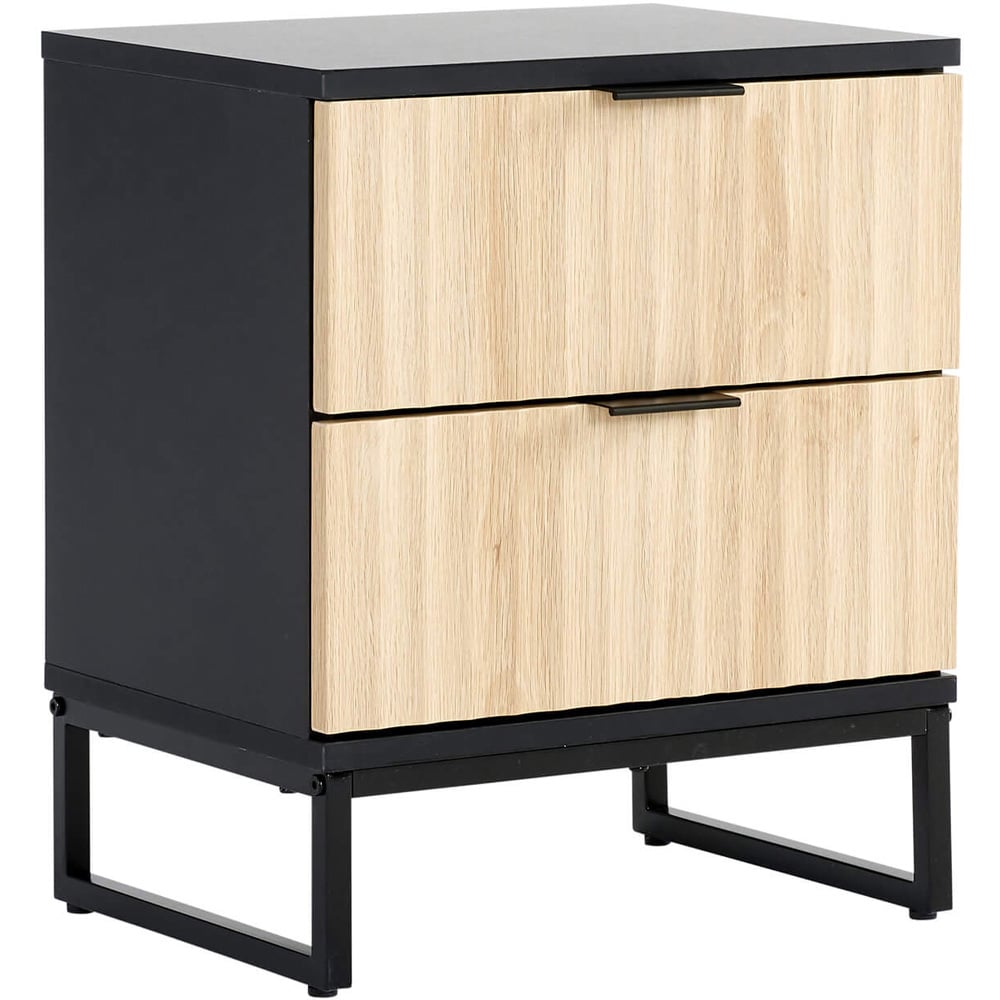 The Hempton nightstand brings a touch of modern elegance to your bedroom. Featuring a stylish ribbed design across the two drawer fronts, this piece is expertly constructed from durable MDF with a resilient PVC covering. The robust black steel legs, finished with a powder coating, ensure long-lasting stability.