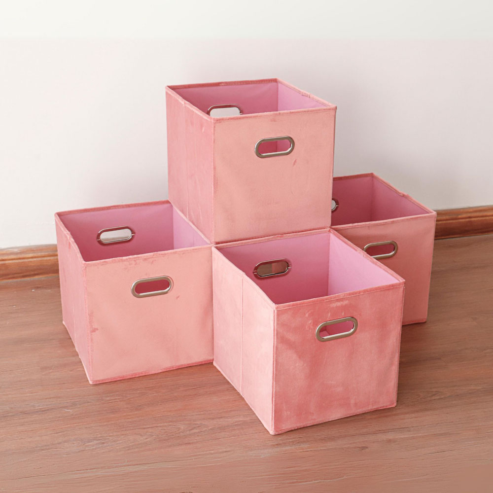 Home Source Large Blush Pink Fabric Cube Storage Box 4 Pack