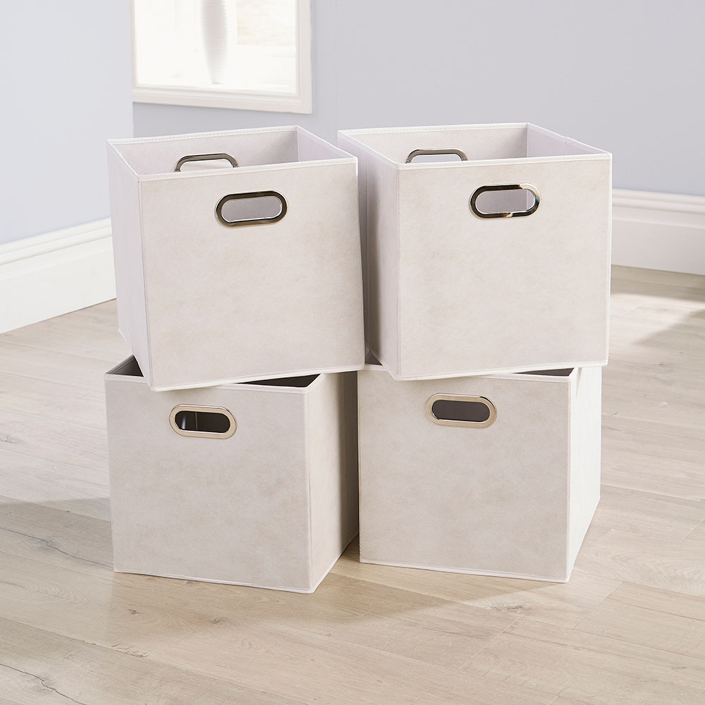 Home Source Large White Fabric Cube Storage Box 4 Pack