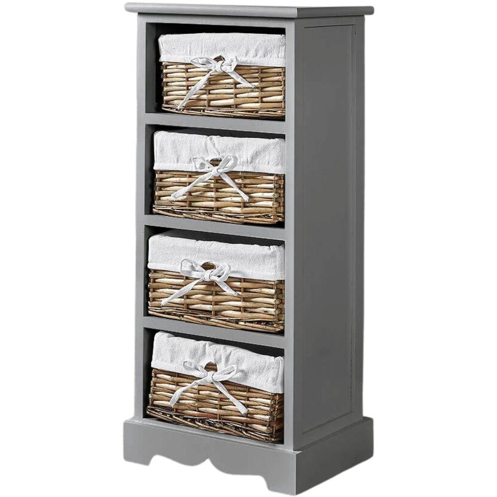 Home Source Lichfield Grey 4 Wicker Basket Drawer Storage Chest