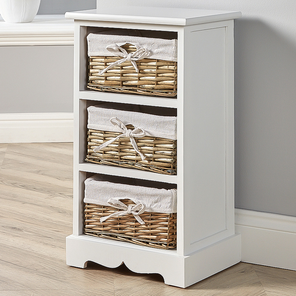 Home Source Lichfield White 3 Wicker Basket Drawer Storage Chest