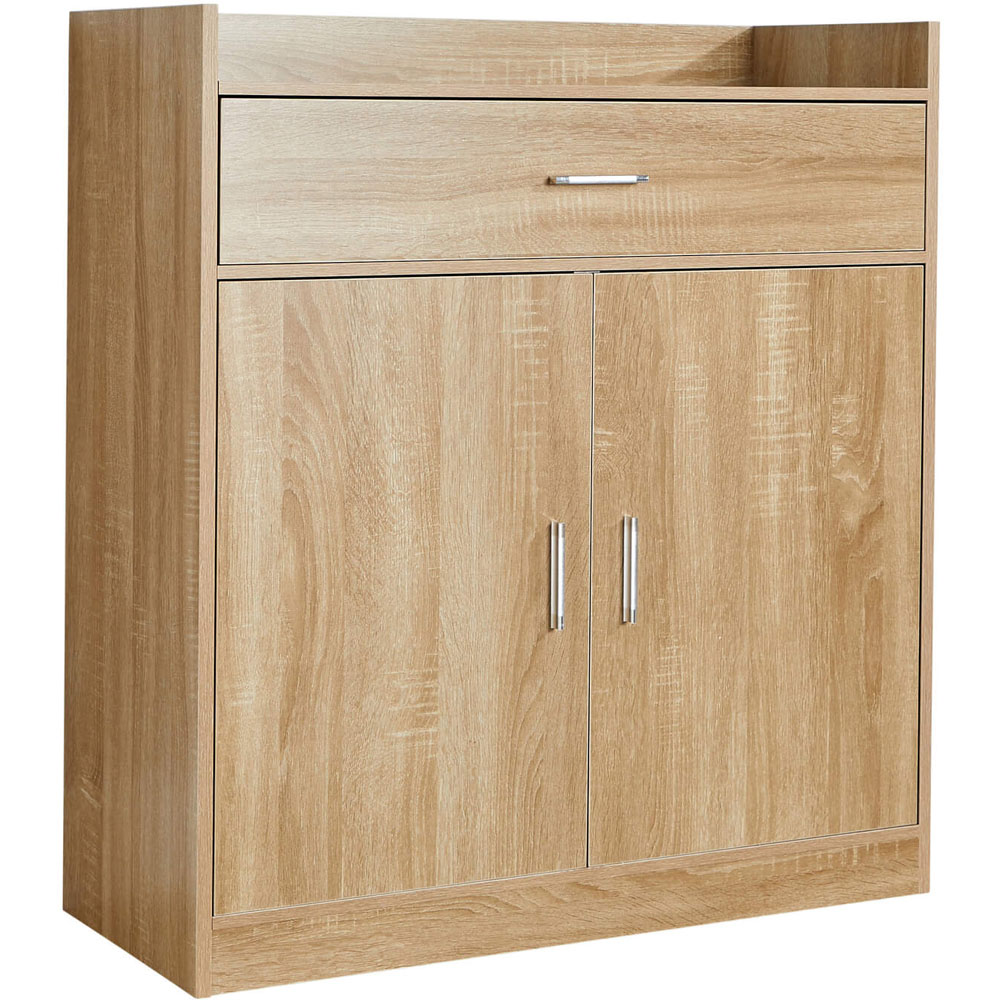Home Source Novara 2 Door Oak Shoe Storage Drawer Cabinet