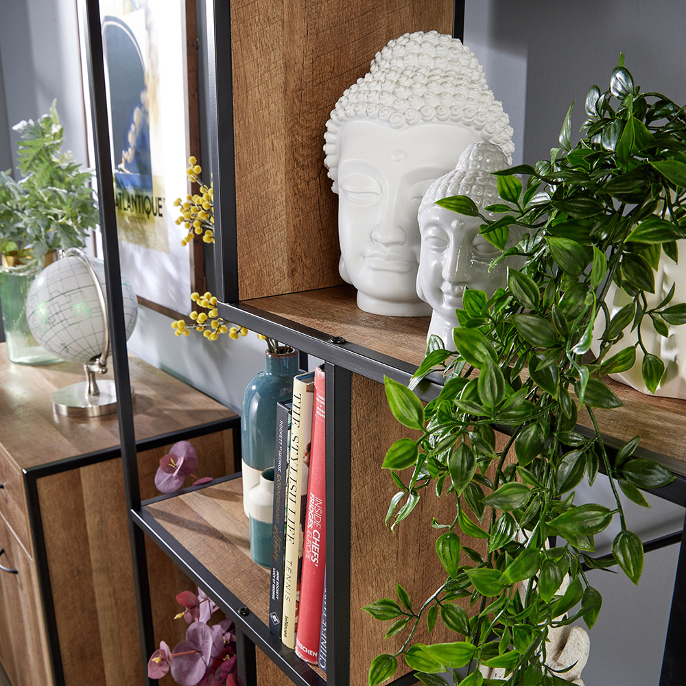 Introduce a touch of industrial chic to your home with the Oakmere Large Bookcase. This shelving storage unit, finished in sleek black, provides ample space for books, décor, and more. The abstract arrangement of variously sized shelves not only offers practical storage but also serves as a modern art piece, enhancing any living space. Featuring a robust black metal frame paired with shelves finished in weathered oak, this unit creates a striking contrast, transforming your room into a stylish and organised haven.