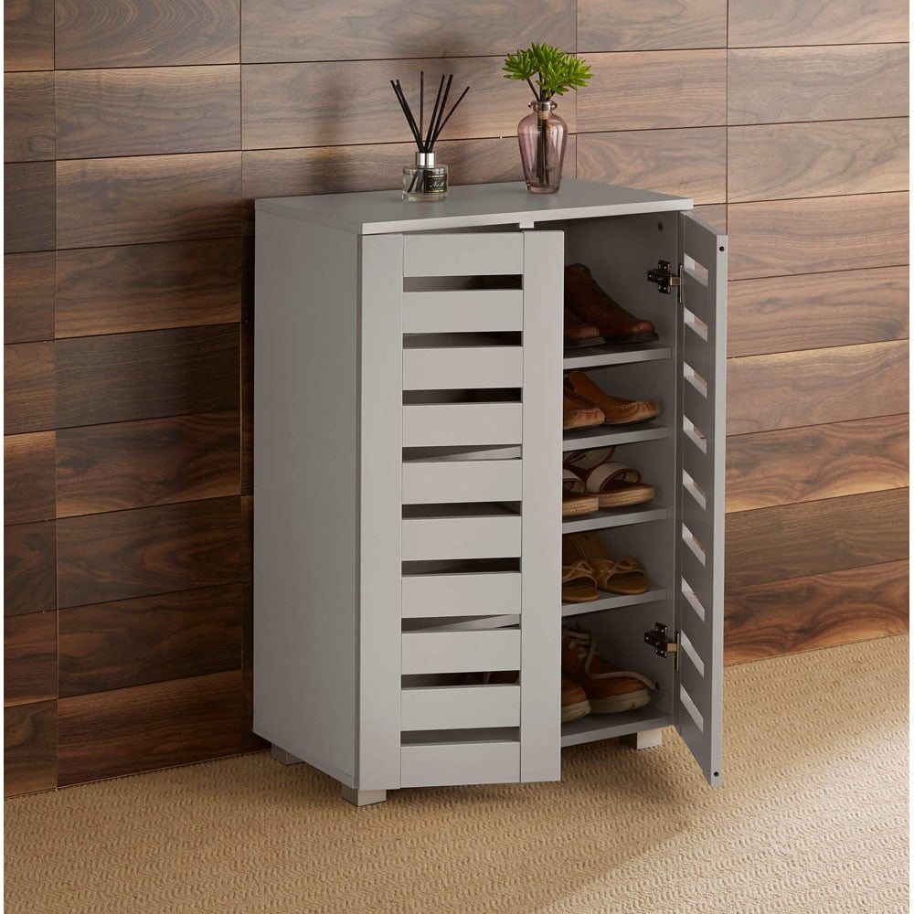 Home Source Oslo 2 Door Grey Shoe Storage Cabinet Unit