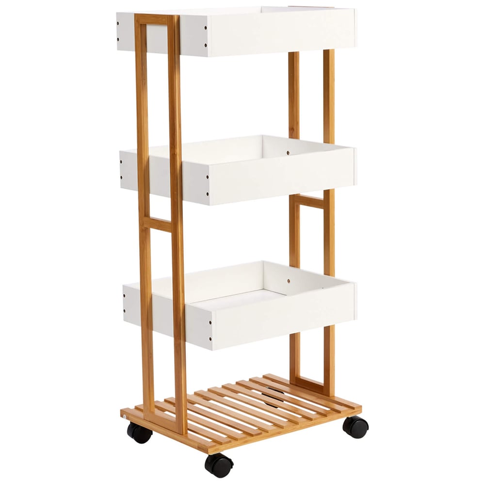 Home Source Oxford Bamboo and White 4 Tier Utility Trolley