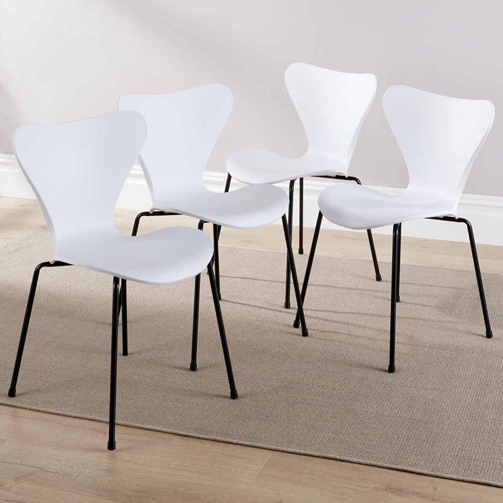 Introduce a touch of contemporary chic to your home with the Penny dining chairs. Sold as a pair, these chairs will bring a unique touch to your kitchen or dining room. Their curved wingback design and comfortable seating make them an ideal choice for stylish dining. Each Penny chair features four slender, tapered legs finished with a high-quality black powder coating, adding an industrial edge.
