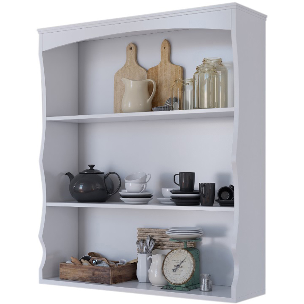 Maximise your storage space with the Home Source Polar Kitchen Wall Mounted 3 Shelves, presented in a crisp painted white finish. Part of the adaptable Polar range, this versatile unit is ideal not only for kitchens and bathrooms but also for enhancing storage throughout your home. Featuring three broad shelves, plus the top surface, it provides plenty of room to keep your belongings organised. From storing spices in the kitchen to displaying books in a child's room, this unit adapts to suit a variety of storage needs. Delivered flat-packed for straightforward self-assembly, ensuring an engaging assembly experience.
