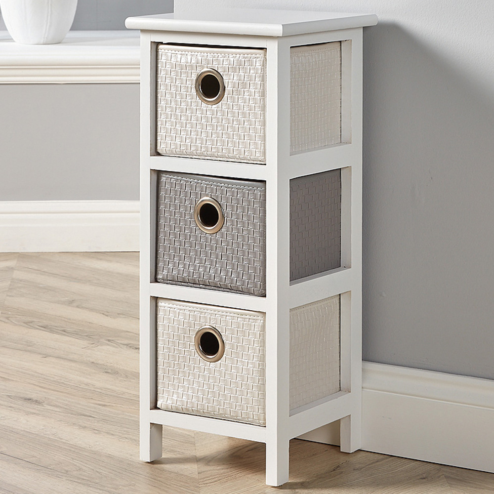 Home Source Sandringham 3 Drawer White Faux Leather Storage Unit